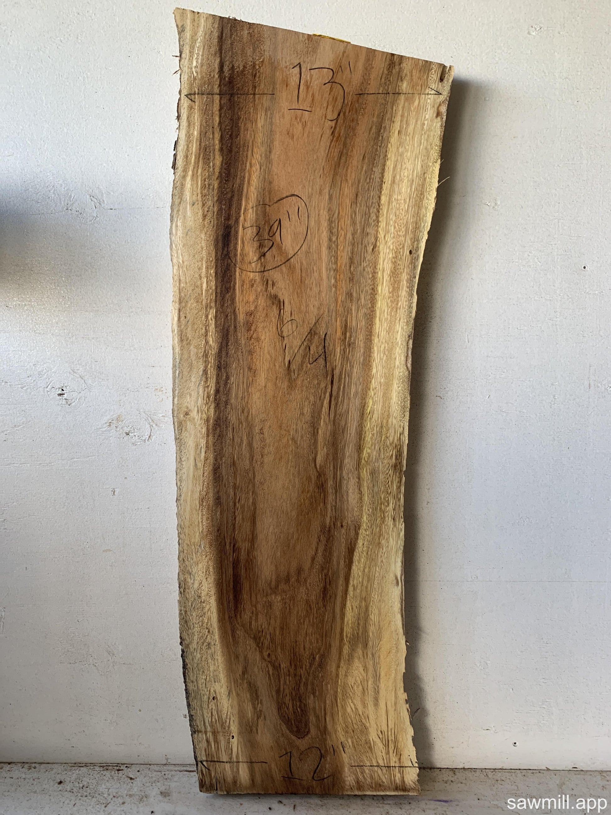 We measured the width of this live edge board at 2 points in order to determine an average width of 12.5 inches.